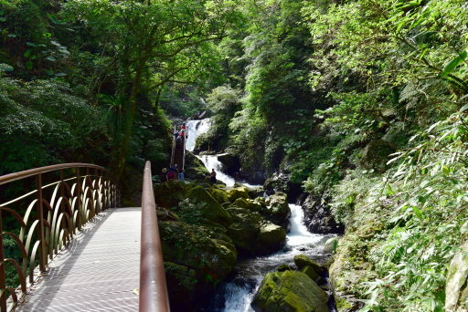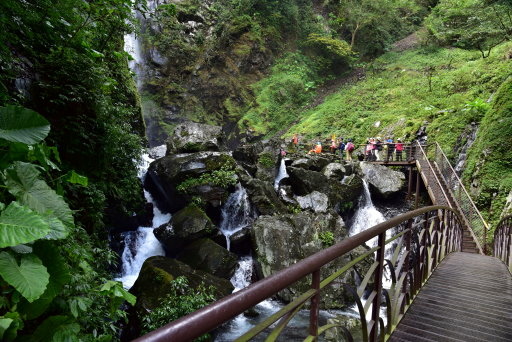 觀瀑人潮眾多,腹地又狹窄,只能站在高架棧道上欣賞瀑布美景!