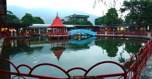 還好水池上有涼亭 小橋及魚兒悠游,看起來還不錯!