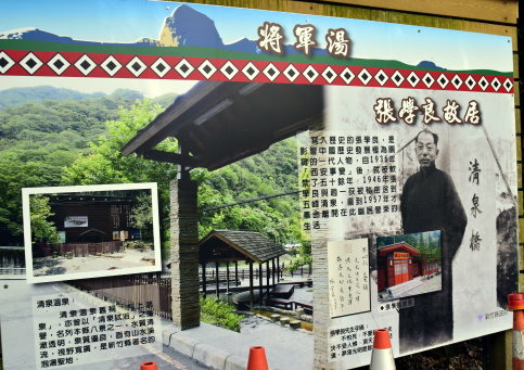走在清泉吊橋上,往左眺望清泉1號吊橋,在清泉大橋旁那棟日式黑瓦建築即是張學良故居。