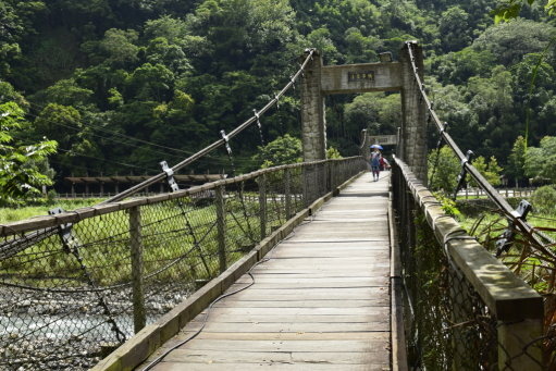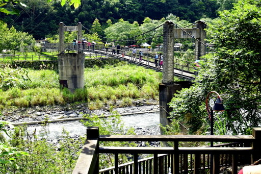 清泉吊橋,橋面上有幾處木板有裂縫,要小心行走!