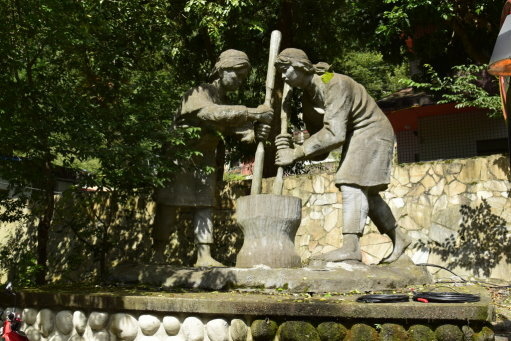 吊橋頭有座原住民雕像,清泉為泰雅族部落。
