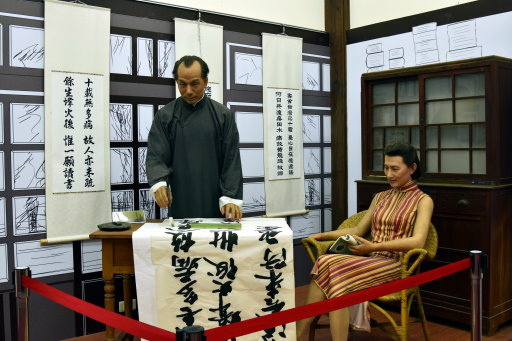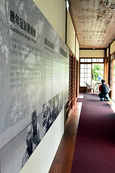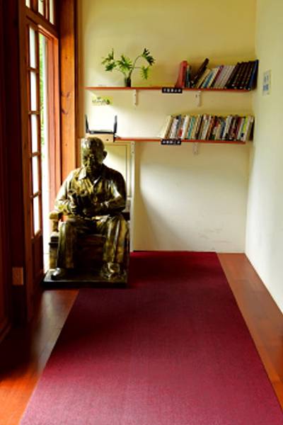 進入張學良故居,張學良閱讀雕像安坐於長廊盡頭。