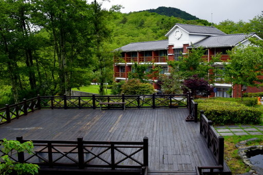 右邊建築為觀霧山椒魚生態中心,左邊為觀霧派出所。