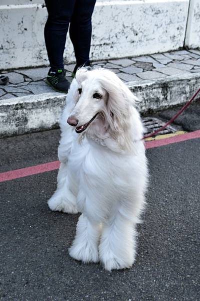這隻阿富汗獵犬,雪白柔軟的毛髮,俊秀的臉蛋,看起來優雅極了!