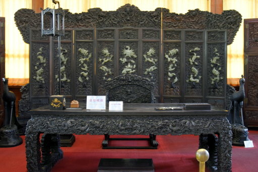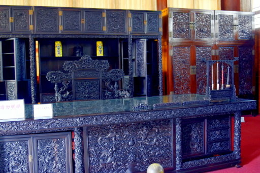 以紫檀木雕刻而成的仿乾隆御書房擺設