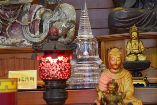 玻璃塔內那顆白色圓球為全世界最大的一顆舍利子-金剛母舍利。解說員說是在泰國山洞中發現的。