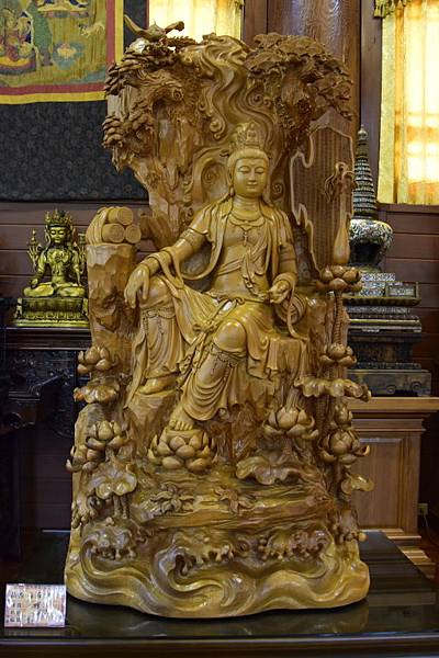 紫檀館,仿唐建築,金碧輝煌,花了七年才蓋成。館內收藏珍貴紫檀木書桌 檜木佛像 唐卡...。
