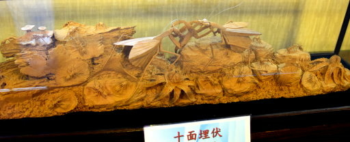 以黃楊木雕刻的十面埋伏,螳螂頭上如細絲般的觸鬚清晰可見!