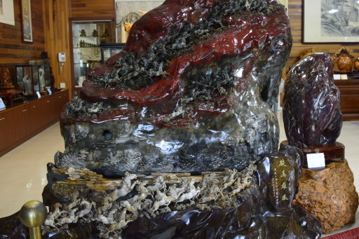 價值連城令人嘆為觀止的收藏品展示館:紫檀館及雞血石館。