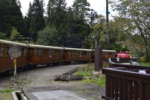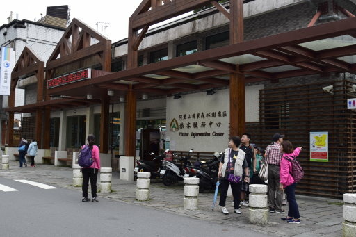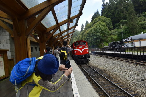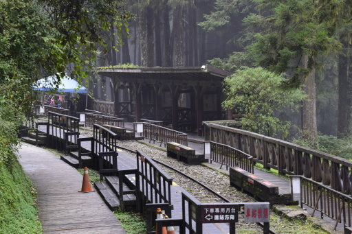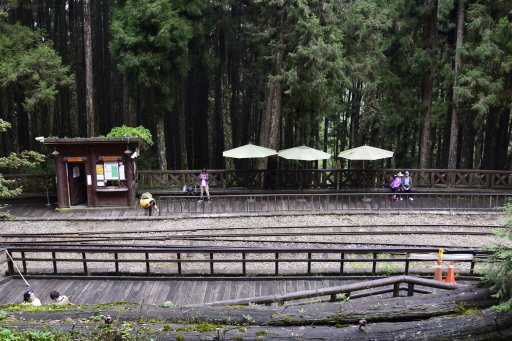 早餐後自竺園山莊出發,來到阿里山國家森林遊樂區,遊覽車在停車場停妥後,我們走至遊園車候車站(總站)搭接駁車。