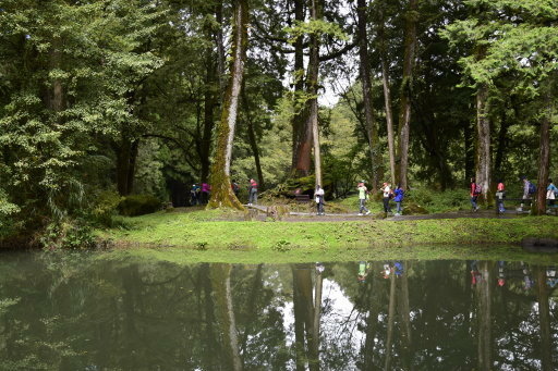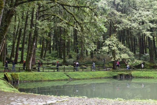 姊妹潭邊密集的檜木林,綠意盎然,大口吸取芬多精,神清氣爽!