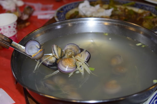 我們在郵局對面餐廳用午餐,這是昨天在王功蚵田所耙的粉蛤,今天早上阿慧將之放在大水桶裡吐沙。