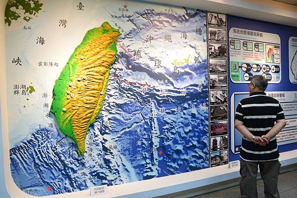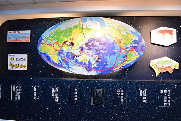 先參觀地震走廊,牆上滿是地震相關資訊圖文。