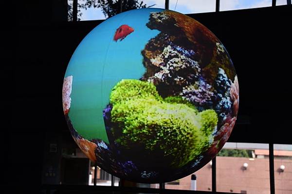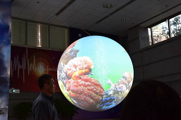 接著來到大廳,那顆大圓球就是地球展示系統。