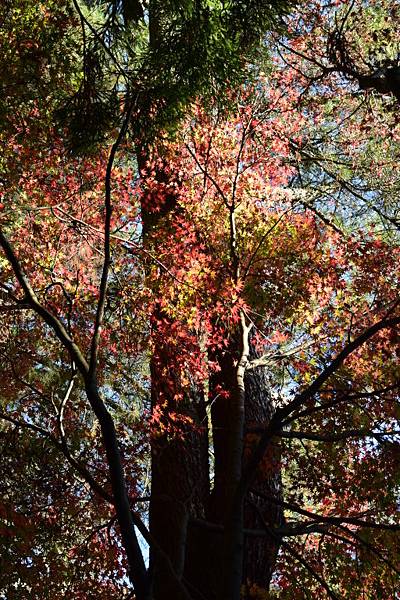 福壽山莊楓葉大多已凋零,只剩零零落落的楓紅,不過高大的介壽松看起來也很美!
