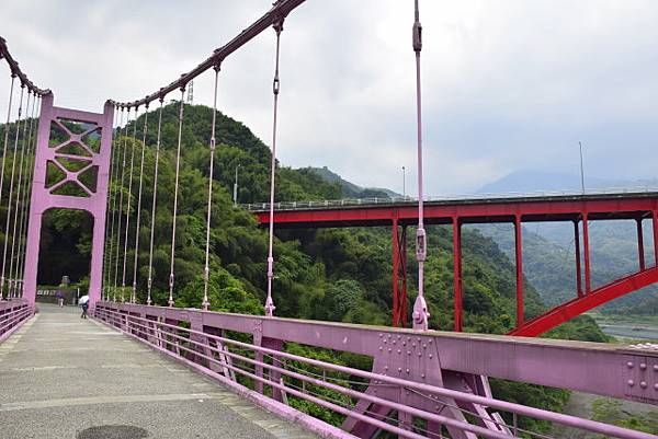 粉紫色的復興橋在青山綠水間,有著柔和之美!