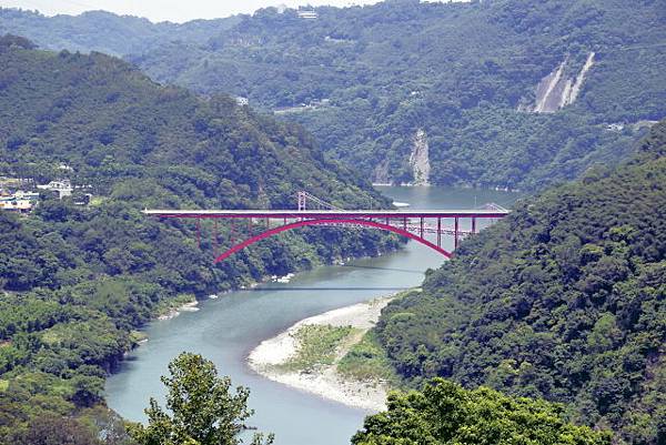 羅浮橋,朱紅的拱型鐵橋,全長230公尺,為北橫三大名橋之一(另為復興橋及巴陵大橋)。