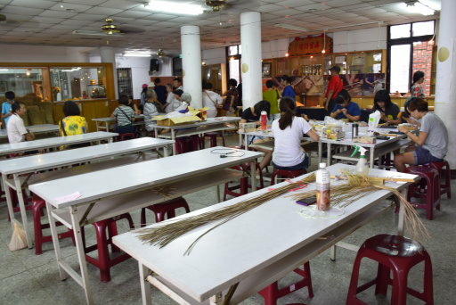 本以為是要去廟內參拜,原來是往右側邊門進入山腳社區-台灣藺草學會參觀。