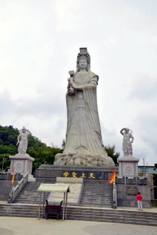 遠遠就看到一尊高大的媽祖石雕聖像矗立在那裡,兩側為千里眼及順風耳。