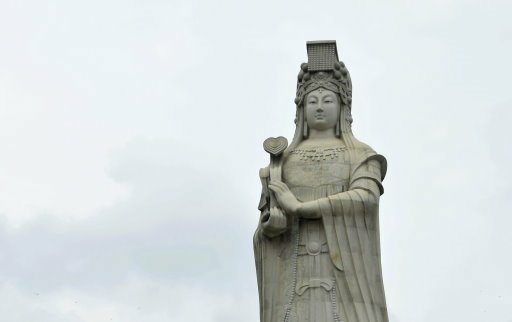 西湖五龍宮媽祖石雕聖像,高26.66公尺,是由299塊花崗石所組成。