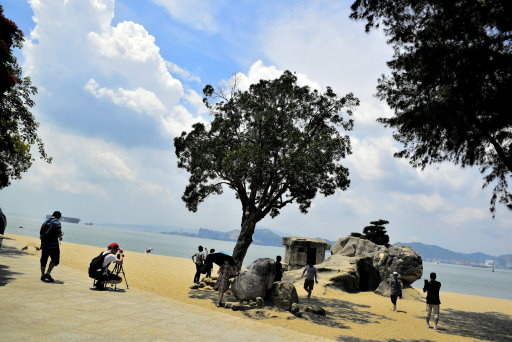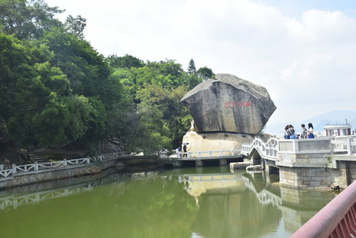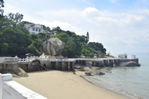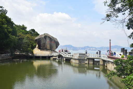 剛好和阿玲小姐坐同部車,她說右側那顆頭上長了小樹的大岩石,就是鼓浪石。快速的照一張。