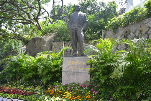 鋼琴博物館門口立有鼓浪嶼鋼琴博物館捐贈者胡友義先生銅像
