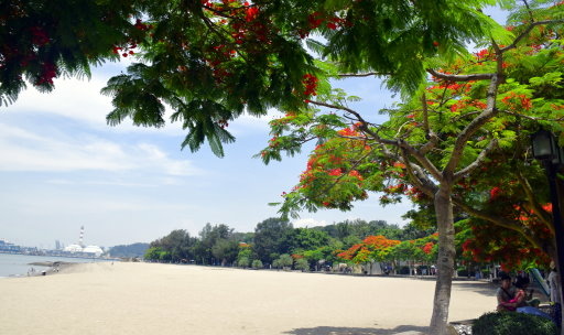 沿路遍植鳳凰木,陽光 沙灘 鳳凰花開,好美的熱帶風情。