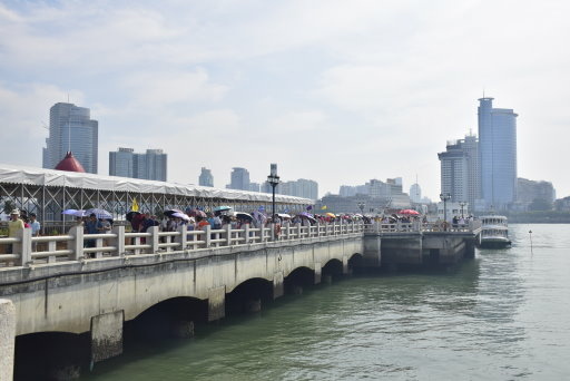 我們第一天鷺江夜遊時,在輪渡碼頭看到的對岸就是鼓浪嶼,感覺好像從淡水眺望八里似的。