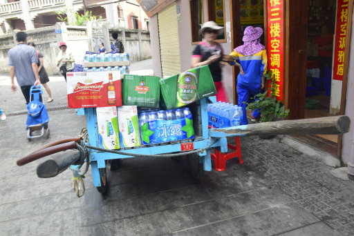 鼓浪嶼的貨物皆以人力拖板車運送。
