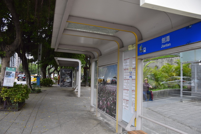 位於劍潭公車站牌旁的圓山風景區牌樓,一旁還有路線圖。