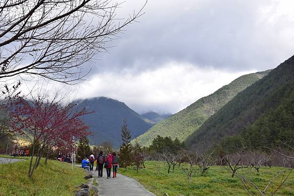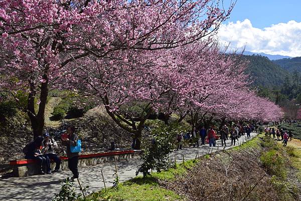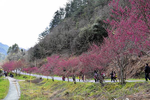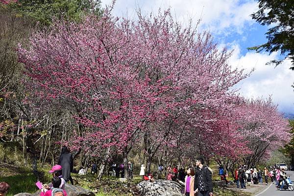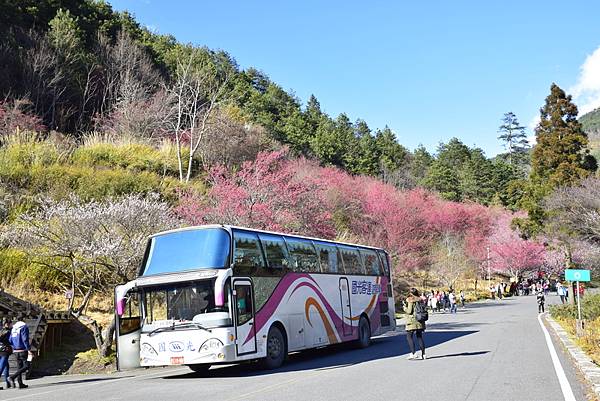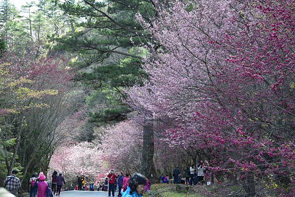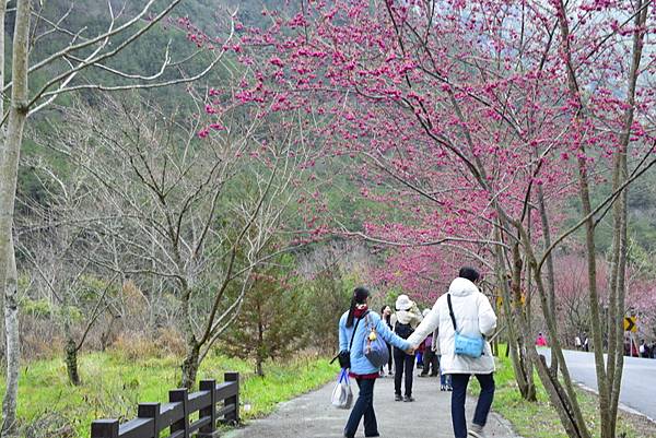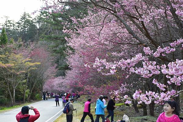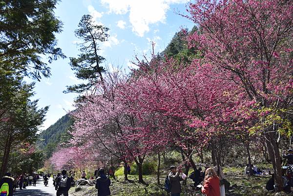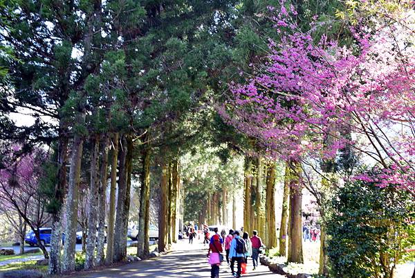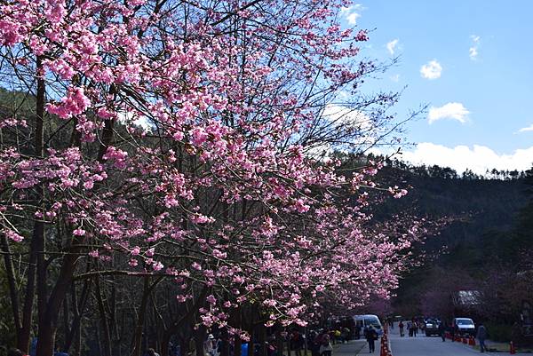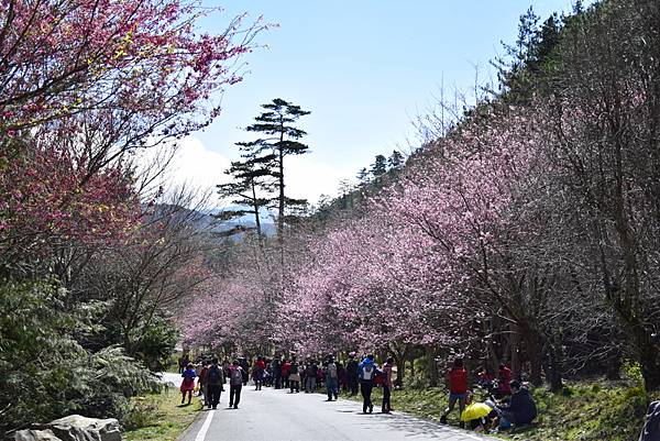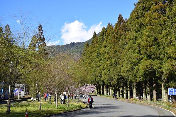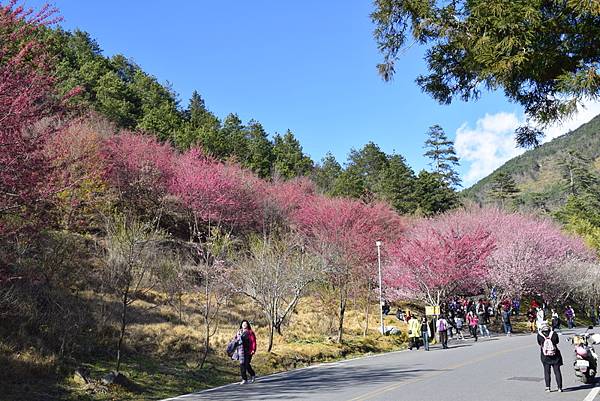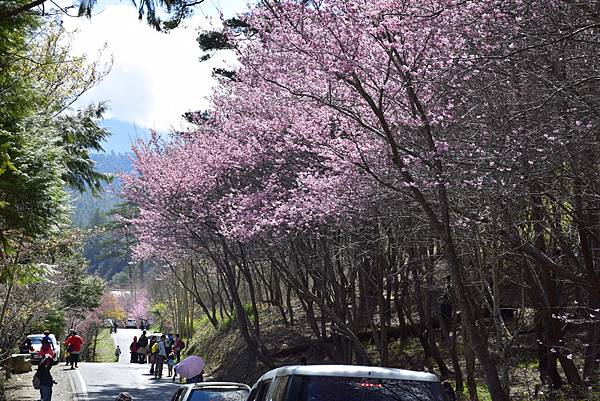 往遊客中心方向前進,櫻花沿路綻放,終於來到嚮往已久的武陵農場賞櫻了,真的很高興!