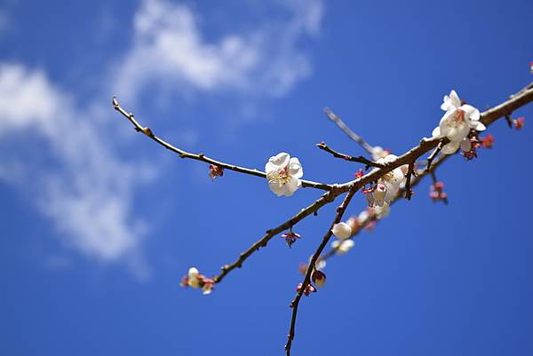 過橋後右側這棵梅花?(看起來像梅花)還美美的盛開著。現在還有梅花嗎?
