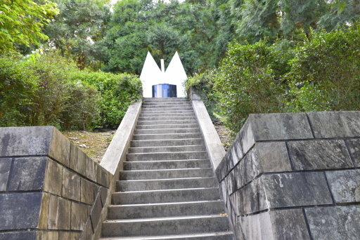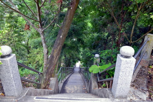 爬上階梯,面對紀念碑的左手邊,有一條羊腸小徑,小徑的盡頭是觀景平台,走到平台上想欣賞景觀,但四周被樹木擋住視線無法遠眺。