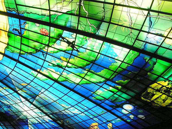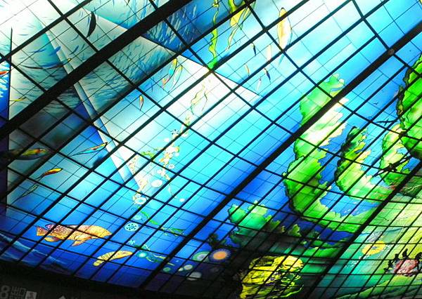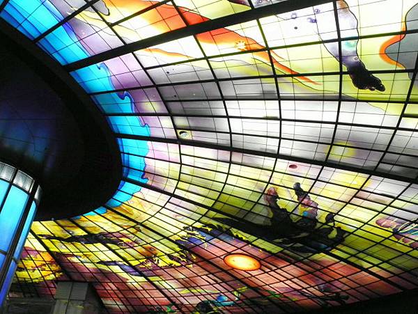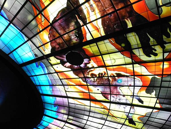 光彩奪目、燦爛耀眼之彩繪玻璃「光之穹頂」,乃由義大利藝術家水仙大師(Narcissus Quagliata)擔綱創作而成。是全世界最大的一體成型單件玻璃公共藝術作品,也是目前世界上最大玻璃鑲嵌藝術的鉅作。
