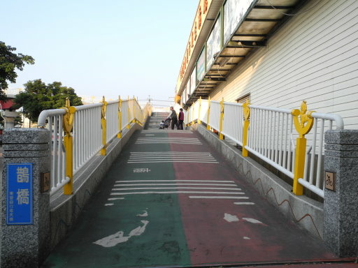遊覽車停在鵲橋旁的廣場上,偶而看到自行車從鵲橋上穿梭,對面就是台中市豐勢路,聽說這裡可連結東豐鐵馬道。