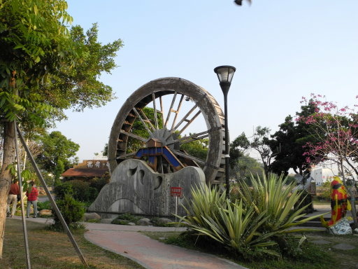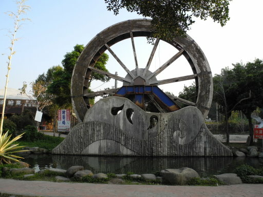 直徑9公尺水車,是全國最大的水車.水車前有個水池,裡面有許多魚兒悠遊.