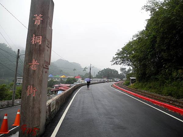 前方出現菁桐老街字樣,終於走到菁桐了,有種如釋重負的感覺.順著鐵道直走,應該可以到達菁桐車站吧!於是加快腳步向前行.
