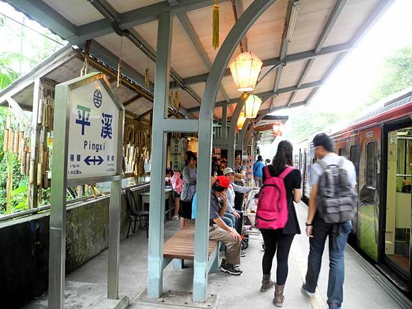 平溪火車站是平溪線上最大的火車站,雖然是平日但月台上還是有許多遊客.