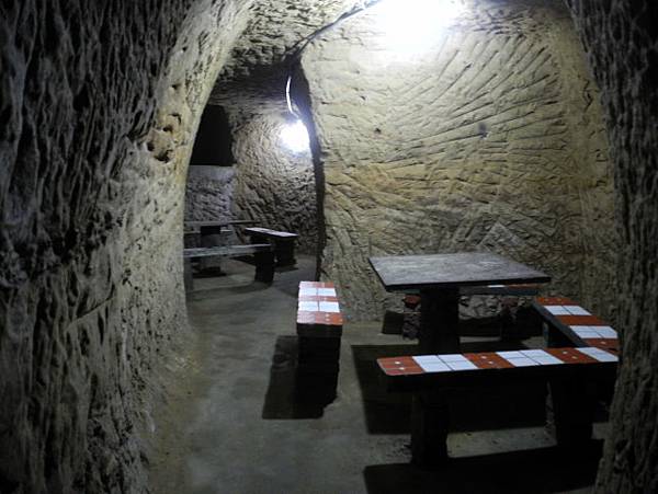 再往前走每個洞內都備有桌椅,洞中又有洞相連.