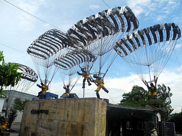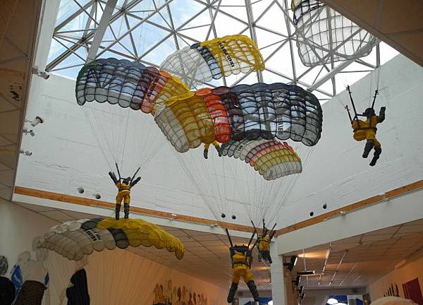 降落傘以黑白呈現,白色在陽光照耀下閃閃發亮,黑色陰天時烏黑突出.