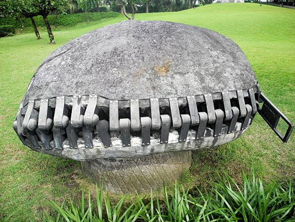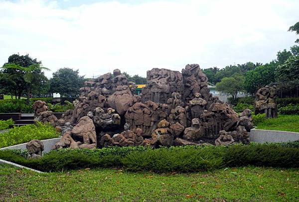 石雕修復保存教育區,為朱銘1994~1996年創作的人間系列石雕作品.空間設計以預防性保存作品為出發點.石雕在有遮蔽場所及無遮蔽場所之損壞情形之比較,以作為將來石材之選用及保存.