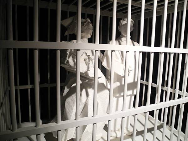 人間系列-囚,雖然被困住了,但鑰匙在牢籠裡.朱大師所要表達的是一念之間,也就是抉擇。