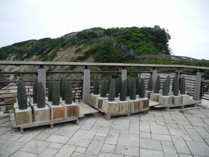 離開仁愛鐵堡來到了南竿北海坑道,坑道前方道路旁放置了許多外型類似砲彈殼的東西,正在納悶到底要作何用途?