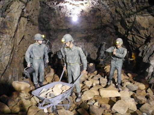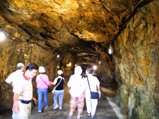 由於坑道狹長彎曲,加上我們人數眾多,隊伍距離拉的很長,所以當導遊在前面解說時,回音傳到後面坑道,就變成一種模糊的慢轉聲,再加上一點風聲,聽起來有點可怕,這才發現前後已沒有同伴,我墊後了,趕緊加快腳步前進!