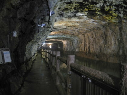 坑道入口光線明亮,但進入水道後燈光昏暗.