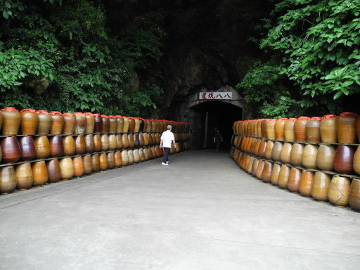 副坑道內兩列又高又大的儲酒糟,非常壯觀,裏面放的都是陳年高梁酒.