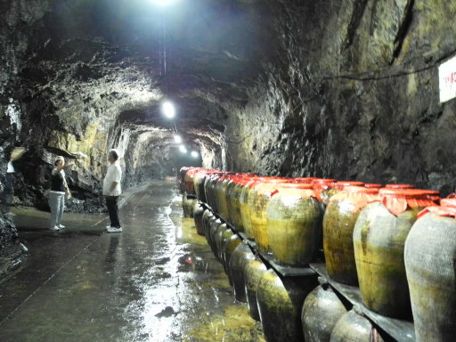 岩壁都是濕漉漉的,因為酒精發酵香氣溢出,久而久之岩壁上佈滿了一層淡黃色的黏液,導遊說將這種黏液塗在皮膚上有美容養顏的功效.試了一下,的確皮膚變的較滑嫩的感覺.