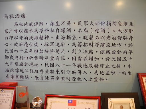 馬祖酒廠位於南竿鄉復興村,民國45年建廠,以大麴 高梁和陳年老酒最受歡迎.