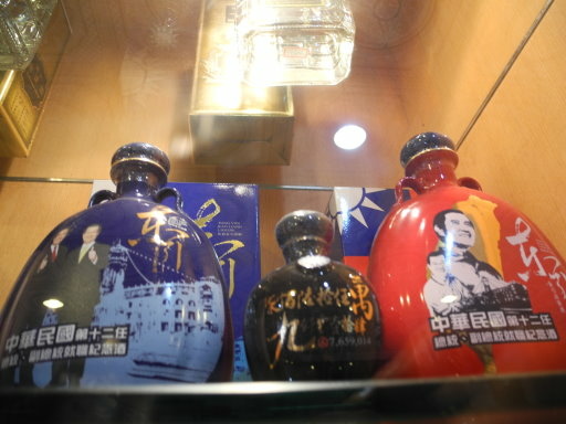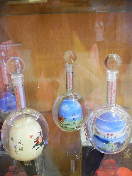 馬祖酒廠展示館內陳列各時期有名的酒類產品