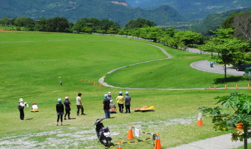 離開阿度的店來到了鹿野高台滑草場,滑草場位於鹿野高台飛行傘起飛場的北側,有著寬廣的大草坪,是全台最大的滑草場。